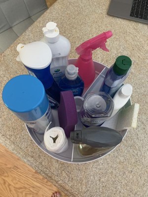Makes a cluttered space work! I got so tired of having to move everything around when I needed something from under the sink. Bottles stay upright, and I have more access to them with a quick spin.
