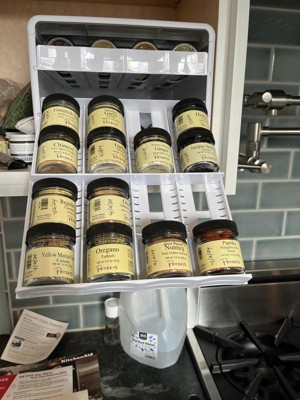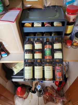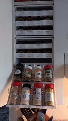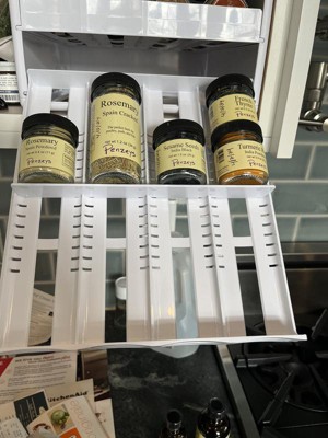 - SPICES WITHIN REACH: Drawers glide out and lower down to resting position at eye level for easy access to 24+ spices. The sleek, patented design brings spices from the back of the cabinet out to you while non-slip feet keep the spice rack in place.