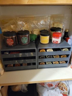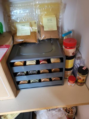 You can fit a lot of spices in small space with this. My only complaint is it is kind of flimsy, so I have to use 2 hands to pull out drawers without dumping stuff.