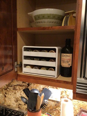 Since my husband retired and found he enjoyed time in the kitchen we have added many more spices to our cupboard. My old spice organization system no longer worked. This perfectly fits the bill. Easy to find and hidden.