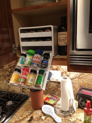 I have two of these because they are so nice. I have a built in spice rack but these are much nicer when I am fixing freezer meals so I do a lot at one time and all my spices are out and I can keep the counter clean by putting them back in these organizers and then I just put these in one of my cabinets.
