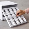 From YouCopia's Organizing Hero™ Collection, the best-selling SpiceStack® Spice Bottle Organizer is now redesigned with a fresh look and (even) better functionality. The patented design expertly organizes your cluttered spice collection in a cabinet or pantry. Three drawers pull down to eye level, so you can quickly locate the spice you need, when you need it. The drawers have adjustable dividers to fit a variety of spice bottle sizes, shapes and heights. Removable drawer labels help you customize the organizer, so you can find spices in a glance. No more rifling through disorganized spice cabinets! With always organized spices, you'll be cooking like a pro.