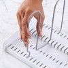 StoreMore® Expandable Pan & Lid Rack stands items in a tidy row, so you can see (not stack) your favorite cookware. Ten adjustable dividers are strong enough for skillets and platters but fit little lids too. Coated steel dividers won’t scratch pans and a non-slip base keeps everything in place. When cabinets are organized, you’ll cooking like a pro.