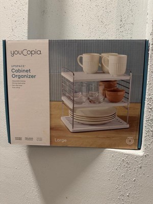 [This review was collected as part of a promotion.] The YouCopia UpSpace Cabinet Organizer is a smart, space-saving solution for cluttered cabinets. Its adjustable shelves make it versatile for storing various items, from plates to pantry goods, maximizing vertical space. The sturdy construction and non-slip feet ensure stability, while the compact design fits most standard cabinets. Setup is quick and tool-free, making it an excellent choice for organizing kitchens efficiently.