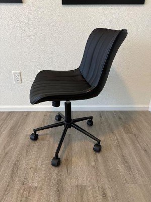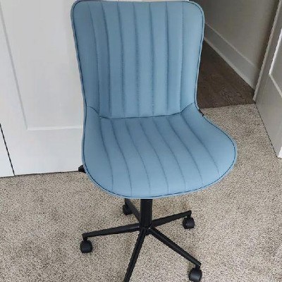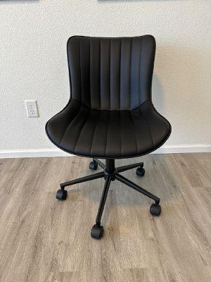 Where do I begin? This chair is a winner. The black color looks sharp and professional against my white desk. The vertical stitching on the back is a nice stylish touch. But the real star is the comfort: the cushion is soft yet supportive, and I can sit through a full workday without any aches. The smooth swivel and easy rolling let me move around freely. Being armless makes it feel less bulky. It was simple to assemble and feels very well-made. Highly, highly recommend!