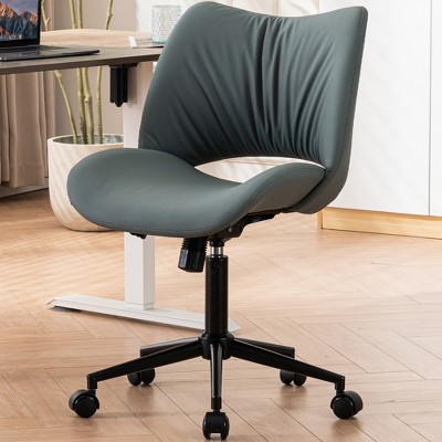 YOUNIKE Grayish Green Swivel Home Office Chair Modern Upholstered Leather Desk Chair Adjustable Rolling Computer Task Chair24.41"Wx25.2"Dx(32.28-37)"H