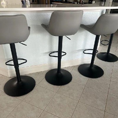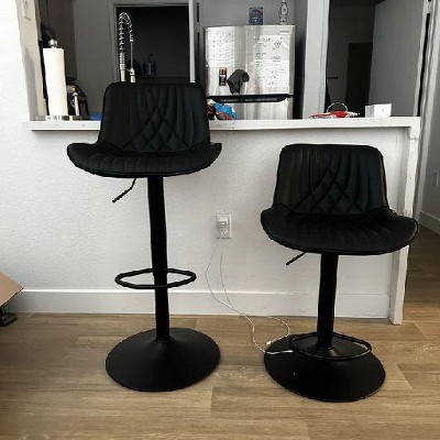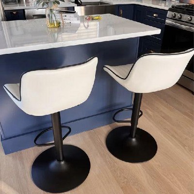 Both practical and artistic, the eye-catching look of this modern barstool makes it a bright addition to your furniture décor, while the use of high-quality materials makes it a long-lasting favorite. The sturdy steel frame features triple-coating techniques and a pedestal base with a convenient footrest. The whole-cut foam-filled seat upholstery with high-quality wear-resistant leather provides comfortable support for your body, while the wear-resistant rounded wraparound inserts add a touch of elegance to your seat. These stools feature an SGS-certified gas rod that adjusts the height from 32.28“ to 41.73” and swivels 360° to ensure easy conversation and ultimate flexibility.