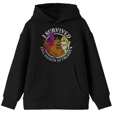 ATTACHED HOOD - The youth boys Five Nights at Freddy's black hooded sweatshirt includes an attached hood to keep your head and neck warm in cold weather.