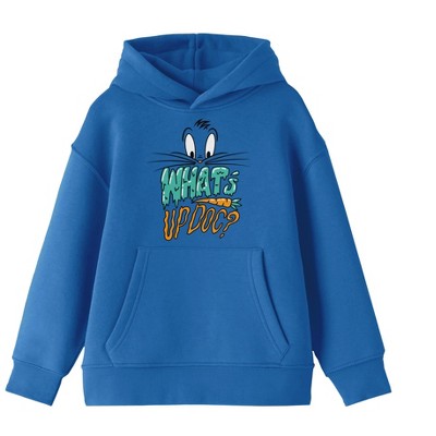 Youth Boys Looney Tunes Classic Cartoon Bugs Bunny Blue Graphic Hoodie-XL
