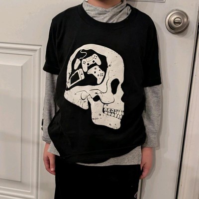 Youth Funny T Shirts Gamer Skull Sarcastic Video Games Graphic Tee for Kids - Crazy Dog Youth T Shirt For Gamers Black L