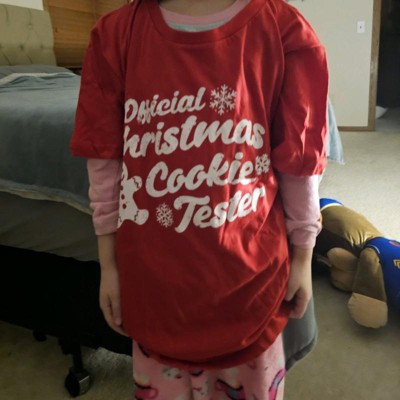 Youth Funny T Shirts Official Christmas Cookie Tester Sarcastic Xmas Graphic Tee for Kids - Crazy Dog Youth T Shirt Gift For Christmas Red L