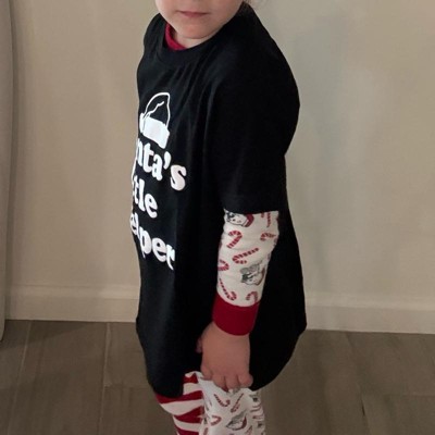 [This review was collected as part of a promotion.] I got this for my daughter she is 5 and about 37 lbs. The size small is a little large on her which is perfect because she can wear it this year and next year too. It is a simple black tee with white screen printing design. She looks so cute in it and loves wearing it. It is a perfect tee for Christmas Eve!