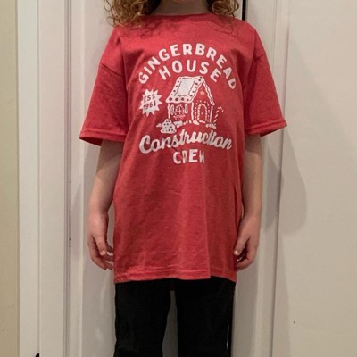 Youth Gingerbread House Construction Crew T Shirt Funny Xmas Treat Joke Tee for Kids - Crazy Dog Youth T Shirt Gift For Christmas Red XL