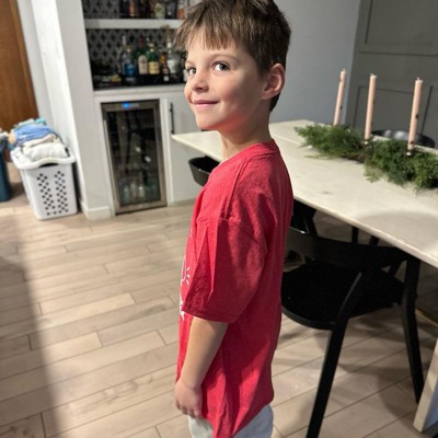 [This review was collected as part of a promotion.] I ordered this T-shirt for my son who is 7 1/2 years old. He sometimes wears a small and sometimes a medium. He is on the tall and skinny side. I got him a size medium in this T-shirt and it was definitely too big for him right now, but will hopefully fit him for a year or two to come and can wear for the holidays . The shirt was soft and comfortable, which is a must for my son.