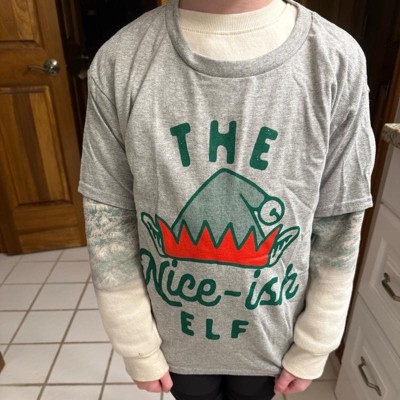 Youth The Nice Ish Elf T Shirt Funny Good Behavior Xmas Elves Joke Tee for Kids - Crazy Dog Youth T Shirt Gift For Christmas Light Grey S