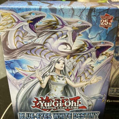 Blue Eyes Destiny Structure Deck. They came in pretty good condition. Corners are a little rough. There wasn’t any protective packing around either box which may have prevented the damaged corners. I bought 2 decks because I always read reviews first from the big card people and it seems to be getting good reviews. I bought them as a gift so I can’t open them to see the cards but I am very happy with the shipping service. I received my order. Thank you!