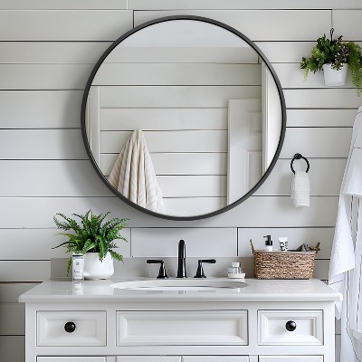 Yukimo 24"H Medicine Cabinet - Matte Black Metal Frame, Recessed/Surface Mount Bathroom Mirror, Fog-Proof