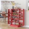 - Upgrade your storage with 5 interior shelves and 12 spice racks, offering abundant room for dishes, cookbooks, pots, pans and spice jars. The spice racks feature bars to prevent items from tipping over. For taller items, the adjustable shelves can accommodate pitchers, pasta containers, blenders and more.