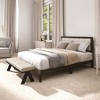 Elevate your bedroom with the Yukimo 78.7" Full Size Platform Bed Frame, combining sophisticated style with exceptional functionality. This elegant bed frame features a comfortable upholstered headboard wrapped in beige linen-feel fabric, perfect for lounging and reading in bed. The sturdy construction includes 12 wooden slats and 10 support legs reinforced with solid wood strips and thick headboard columns, ensuring reliable support for up to 726 lbs without requiring a box spring. The walnut wood grain finish with charcoal gray accents adds warmth and character to your bedroom while the 6.7" under-bed clearance provides convenient space for storage and easy cleaning. Measuring 78.7"L x 55.9"W x 39.4"H with a 56.3"L x 19.7"W headboard, this platform bed frame accommodates standard full-size mattresses and features adjustable feet with anti-slip pads for stability on various floor surfaces. The thoughtful design blends mid-century modern charm with contemporary functionality, making it an ideal centerpiece for your bedroom decor. Assembly is straightforward with clearly labeled components and comprehensive instructions, ensuring a smooth setup experience for creating your perfect sleep sanctuary.