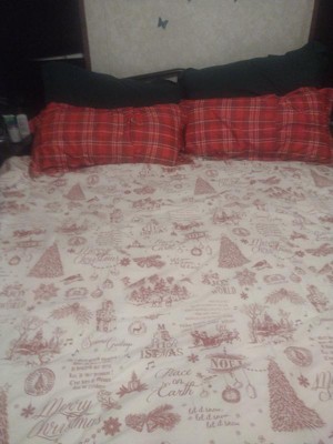 The Yuletide Comforter Set by Levtex Home is classic holiday. Offered in red and cream, this design will immediately transform your bedroom. Made with a soft, luxurious cotton, this comforter set features a melange of Christmas sayings, phrases, icons and symbols. It has a red and cream print on the front and a red, white and green plaid on the reverse. It is filled with a hypoallergenic 100% polyester filler. The Yuletide Comforter Set is machine washable and you can enjoy this for years to come!