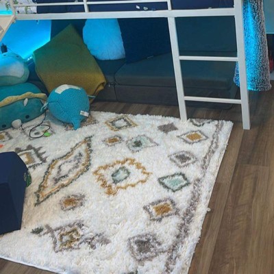 Amazing rug for the price! The colors are beautiful and match so well with almost all of pillowforts themes. My son has this in his Dino themed room but it would also go so good in my daughter pillowfort garden themed room! So soft and shaggy for their little toes.