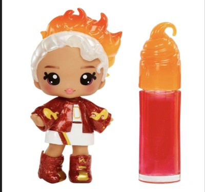 Welcome to Yummiland, where seven NEW Yummi characters join in to protect their incredible, edible city with their lip gloss superpowers. Play along by mixing and creating your very own special lip gloss! Each includes base, color and scent along with removable keychain to take your lip gloss and Lip Gloss Doll on-the-go. Yummiland Lip Gloss Dolls are articulated and feature removable fashions and accessories so you can customize. This collection includes two mystery chase characters with surprise flavors!