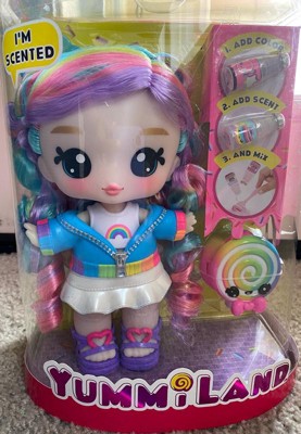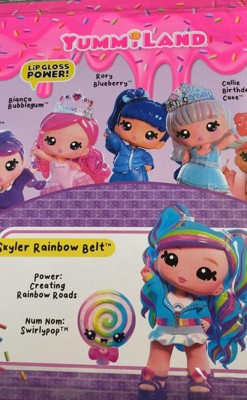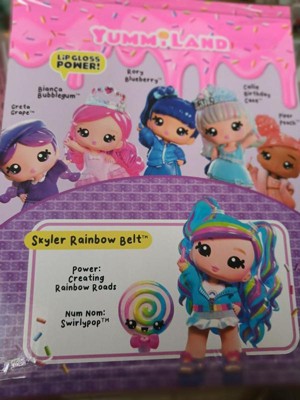 - SCENTED CHARACTER DOLL. Like all Yummiland dolls, Skyler Rainbow Belt herself is scented with her sweet signature fragrance, matching that of her included lip gloss kit.