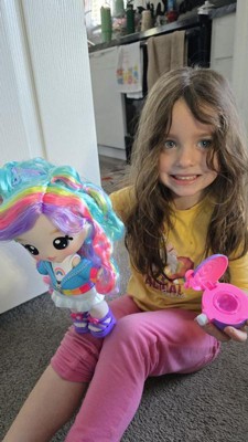 [This review was collected as part of a promotion.] My five year old grand was so excited when she opened the box.She is so pretty with her rainbow colors.She can comb her hair and act like she is in the beauty shop.She definitely likes her and plays with her alot.
