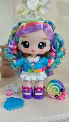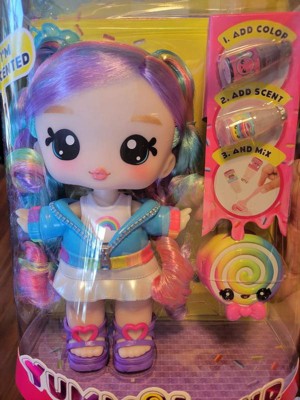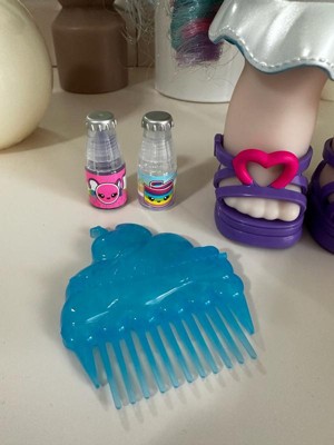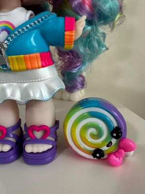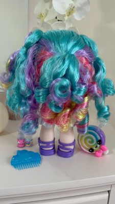 [This review was collected as part of a promotion.] This doll is quite larger than I expected, which is fine by us! She does have a lovely little scent, which my daughter loves! Her gorgeous rainbow hair is soft and vibrant, perfect for brushing and styling with the matching purple comb. My daughter's favorite part was the customizable lip gloss pet, as she loved being able to add as much scent and color as she wanted to create her own unique gloss. The doll also has removable clothes and accessories, allowing for mix-and-match fun.