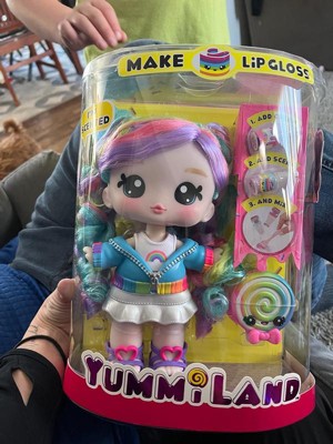 - INSPIRE KIDS TO BE CREATIVE. Play and create with your favorite Yummiland character in a fun and original way! Large Yummiland dolls come with their matching pet Num Nom and everything you need to make your very own lip gloss – plus customizable fashion and hair that you can style.