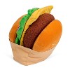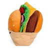 - Made from super-soft materials with premium embroidered details, this stackable burger plush comes complete with optional onions!