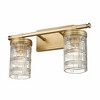 Adorn a traditional-leaning bathroom countertop vanity with this sophisticated, classically designed transitional two-light vanity wall sconce. With an old-world restoration flair, two cut crystal-inspired glass shades present a handsome Glen plaid pattern, creating a scintillated effect across countertops and walls. A shiny brushed nickel plate and caps complement cool tone metal fixtures and hardware, lending a timeless look to this metropolitan two-light vanity wall sconce, transforming bathroom interiors.