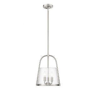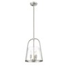 With a subtle nautical theme and a decadent mix of materials, this three-light pendant from the Archis collection delivers transitional style elements perfect for any space. Framing of brushed nickel finish steel emulates an open bell silhouette with a romantic clear glass shade positioned at its bottom. Candelabra lamping changes up the mood with a softening effect, making this pendant a superb option for a trending minimalist modern or transitional setting.
