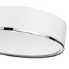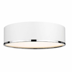 Bold and modern defines this flush mount, which features a two toned metal shade and stepped diffuser. Its bold but understated style makes this a versatile modern ceiling light fixture for any room in your home. Room Recommendation: Bedroom/Dining Room/Foyer/Hallway/Kids Room/Kitchen/Living Room/Office/Utility Room Shade Included: Yes Dimmable: Yes Material: Steel, Finish Color: Matte White/Chrome, Width: 20.25", Height: 6", Length: 20.25", Hanging Method: Flush, Lamping Type: Incandescent, Number Of Bulbs: 4, Wattage: 60 Watts, Dimmable: Yes, Moisture Rating: Damp Rated
