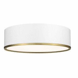Bold and modern defines this flush mount, which features a two toned metal shade and stepped diffuser. Its bold but understated style makes this a versatile modern ceiling light fixture for any room in your home. Room Recommendation: Bedroom/Dining Room/Foyer/Hallway/Kids Room/Kitchen/Living Room/Office/Utility Room Shade Included: Yes Dimmable: Yes Material: Steel, Finish Color: Matte White/Rubbed Brass, Width: 20.25", Height: 6", Length: 20.25", Hanging Method: Flush, Lamping Type: Incandescent, Number Of Bulbs: 4, Wattage: 60 Watts, Dimmable: Yes, Moisture Rating: Damp Rated