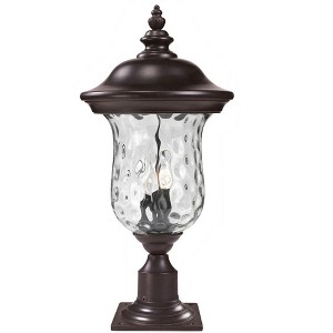 Traditional charm emanates from this large outdoor pier mount fixture, which pairs clear water glass with rubbed bronze hardware for a timeless look. Outdoor Living/Deck/Patio Shade Included: Yes Dimmable: Yes Material: Glass, Finish Color: Bronze, Width: 12.38", Height: 25.5", Fitter Size: 3 Inch", Lamping Type: Incandescent, Number Of Bulbs: 3, Wattage: 60 Watts, Dimmable: Yes, Moisture Rating: Wet Rated