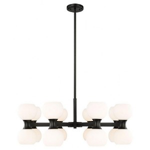 Artemis 16-Light Chandelier - Mid-Century Modern Matte Black Steel with Opal Glass Globes