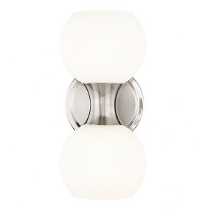 Simplicity turns modern and elegant in a Mid-Century Modern influenced design reflecting careful styling and adding a double dose of soft illumination. This two-light wall sconce from the Artemis collection makes good use of circular silhouetting, placing charming matte opal glass globe shades in a stacked fashion, as a brushed nickel finish steel frame delivers versatility and a gleaming quality ideal for a bath space or main living area.