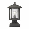 Watch an exterior landscape come to life with the addition of this elegant oil rubbed bronze finish pier mounted fixture. Featuring a dynamic aluminium dual frame, its seedy glass shade adds a perfect finishing touch and a ton of contemporary personality. Outdoor Living/Deck/Patio Shade Included: Yes Dimmable: Yes Material: Aluminum, Finish Color: Black, Width: 9", Height: 14.75", Lamping Type: Incandescent, Number Of Bulbs: 1, Wattage: 100 Watts, Dimmable: Yes, Moisture Rating: Wet Rated