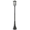 This oil rubbed bronze finish three-light outdoor post mounted fixture transforms a conventional exterior space into a designer's gallery. Enjoy the romantic feel of seedy glass and a candelabra-style bulb mount, as well as ornate detailing on its aluminium body and frame. Outdoor Living/Deck/Patio Shade Included: Yes Dimmable: Yes Material: Aluminum, Finish Color: Black, Width: 14.17", Height: 106.69", Length: 11", Fitter Size: 3 Inch", Lamping Type: Incandescent, Number Of Bulbs: 3, Wattage: 60 Watts, Dimmable: Yes, Moisture Rating: Wet Rated