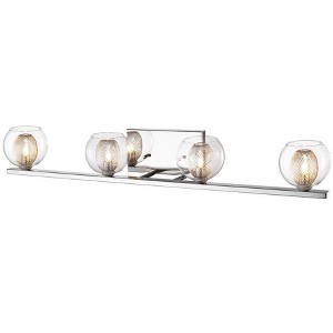 This 4 Light Vanity will bring modern elegance to your decor. The chrome fixture is paired with clear glass. Bathroom/Powder Room Shade Included: Yes Dimmable: Yes Material: Steel, Finish Color: Chrome, Width: 32.68", Height: 4.92", Length: 5.51", Depth: 5.51", Backplate Width: 5", Backplate Length: 8", Lamping Type: Halogen, Number Of Bulbs: 4, Wattage: 40 Watts, Dimmable: Yes, Moisture Rating: Damp Rated