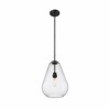 An eye-catching one-light pendant perfectly encapsulates the modern aesthetic. The tapered bell-shaped shade is made from clear glass, suspended from a steel frame with a sleek matte black finish. The fixture brings a chic cutting edge to a contemporary kitchen or dining room.