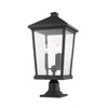 Make sure guests are not in the dark as you throw an outdoor soiree. Perfect for a walkway or garden, this black finish outdoor post light delivers a sweet village ambiance with a clear view of a three-light candelabra bulb base. Room Recommendation: Outdoor Living/Deck/Patio Dimmable: Yes Shade Included: Yes Material: Aluminum, Finish Color: Black, Width: 12", Height: 25.5", Fitter Size: 3 Inch", Lamping Type: Incandescent, Number Of Bulbs: 3, Wattage: 60 Watts, Dimmable: Yes, Moisture Rating: Wet Rated