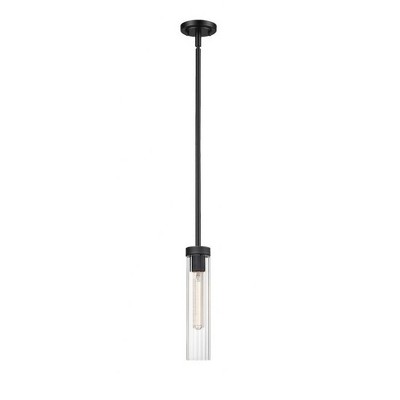 Slim, fluted glass create soft light diffusion for a Beau collection one-light pendant. Modern with a timeless sensibility, the pendant shows off a clean, precise silhouette complete with a black cloth suspension and brushed nickel hardware and ceiling plate for a gleaming finishing touch.