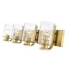 This four-light vanity light from the Beckett collection offers a minimalist look with customized materials. Create a sophisticated aesthetic in a mid-sized bath or dressing space with a fixture formed of classic brushed nickel finish steel and highlighted with the romantic look of cylindrical clear seedy glass shades. Dimmable: Yes Shade Included: Yes