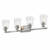 Frame a master or guest bath sink with elegance, and add this brushed nickel four-light vanity light to a new or remodeled bath space. Contemporary and transitional, its versatile motif hits on a beautiful blend of durable steel and soft, delicate bell shades fashioned from clear seedy glass. Bathroom/Powder Room Mounting Direction: Up/Down Shade Included: Yes Dimmable: Yes