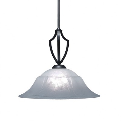 Curvy clear glass is accentuated with an artisan ribbon effect on a modern one-light pendant that makes a statement in your kitchen or living room. Charming in brushed nickel, it boasts a crisp, clean silhouette that brims with character as the dimensional shade refracts light to reduce glare and create an inviting ambiance in your home.