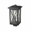 This one-light outdoor post mounted fixture comes in a box-shaped black aluminum cage with a clear seedy glass finish. It softly diffuses light to provide a welcoming glow to your front entrance or patio. Compelling X-accents bring dimension and character. Outdoor Living/Deck/Patio Shade Included: Yes Dimmable: Yes Material: Aluminum, Finish Color: Black, Width: 9.5", Height: 18.75", Length: 9.5", Lamping Type: Incandescent, Number Of Bulbs: 1, Wattage: 100 Watts, Dimmable: Yes, Moisture Rating: Wet Rated