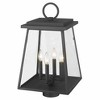 Take a stroll back in time to an old village maritime theme, with a modernized effect that works well in all spaces. From the Broughton collection, this four-light outdoor post-mount fixture offers construction of sleek black aluminum and clear beveled glass panels on its lantern-style shade. Romantic candelabra bulb mounts tell the tale of a storied aesthetic.