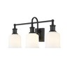 This three-light bath light from the Bryant collection introduces a charming nautical vibe with industrial flavor. Admire a bold matte black finish steel frame and wall mount that create contrasts to opal glass shades. A curved arm, ornate holders, and lipped shades generate extra charm that stylize a custom bath space. Dimmable: Yes Shade Included: Yes